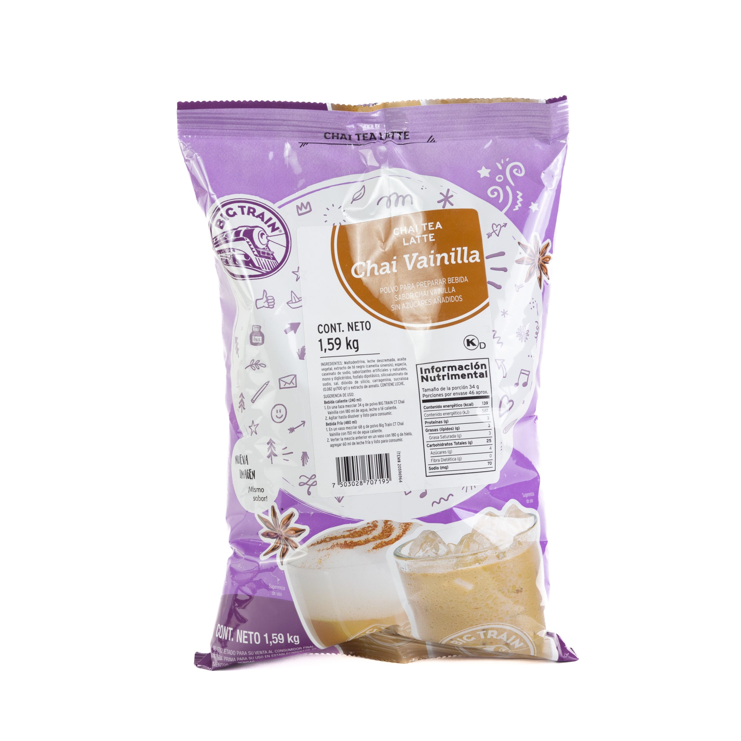 Polvo saborizante Big Train, sabor Chai vainilla sin azúcares añadidos.